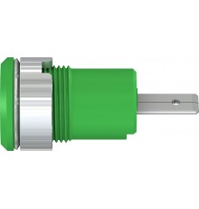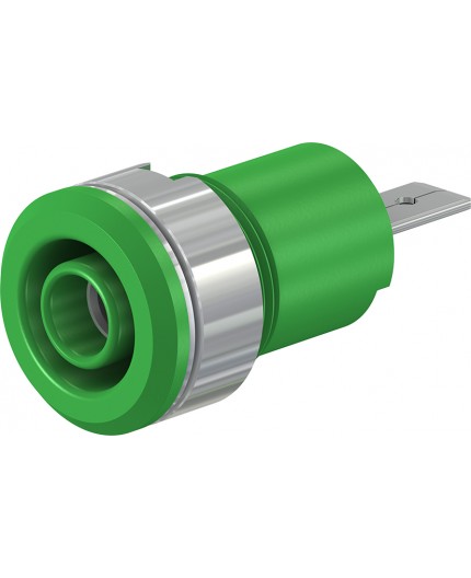 Boccola di sicurezza 4mm. nichelata, connessione con faston 4,8x0,8mm. che può essere piegato a 90°. Fissaggio con dado rotondo.